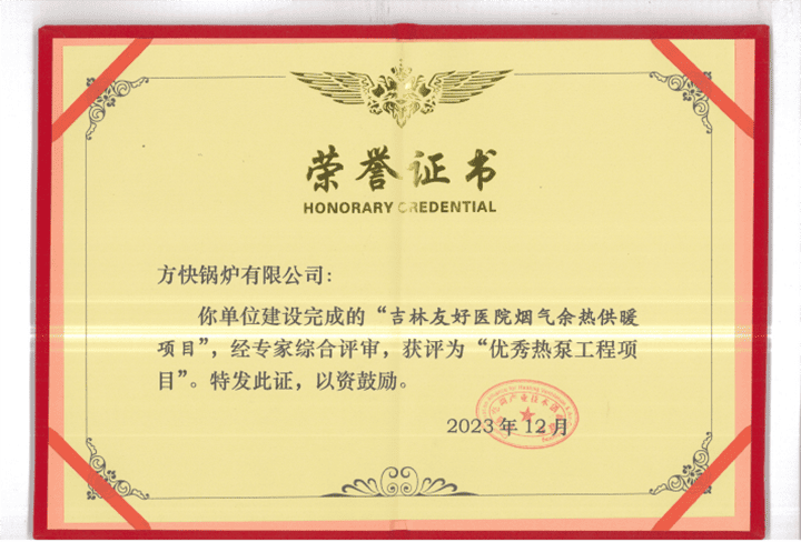 近日,由中國建筑科學研究院有限公司、暖通空調產業技術創新聯盟主辦的“熱泵發展 多能互補”第十一屆中國熱泵工程大會在西安召開。大會上,方快鍋爐“吉林友好醫院煙氣余熱供暖”項目獲評“優秀熱泵工程項目”,再次彰顯了方快在熱泵領域的卓越實力,可謂實至名歸。項目負責人盧潔女士獲評“優秀項目負責人”榮譽稱號,這一榮譽不僅是對她個人領導和執行能力的肯定,更是對方快鍋爐專業研發團隊在項目實施和實踐成果方面的全面認可。