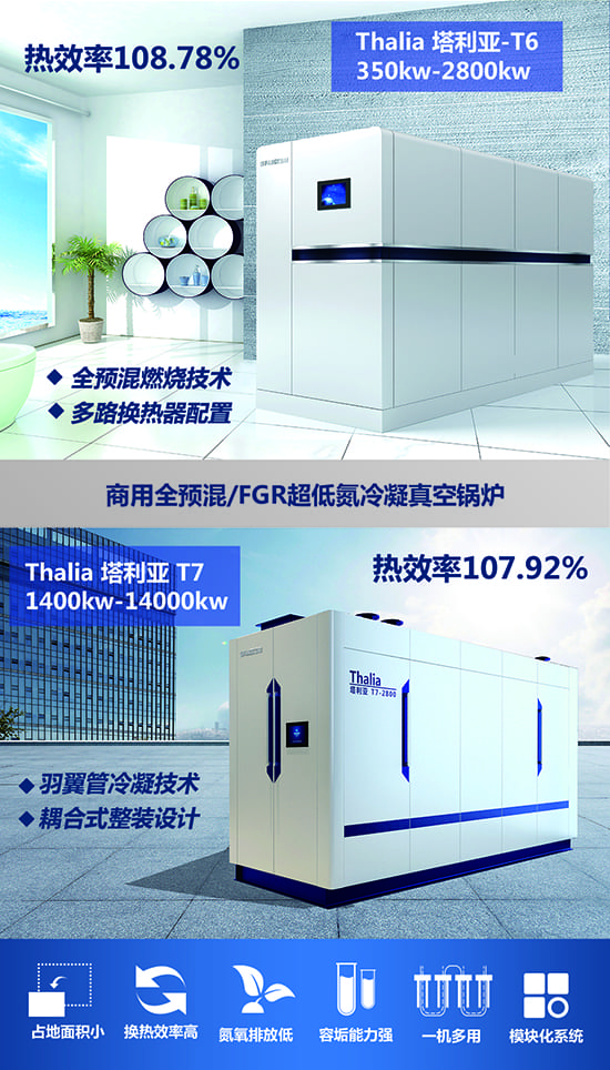 近年來,隨著技術(shù)的提升,真空熱水鍋爐的發(fā)展也逐漸加快,產(chǎn)生了許多優(yōu)質(zhì)的生產(chǎn)廠家。冷凝燃氣鍋爐領(lǐng)跑者、商用熱水解決方案專家 - 方快,憑借多年扎根熱水行業(yè)的經(jīng)驗,注重技術(shù)革新,自主研發(fā)生產(chǎn)的超低氮全預(yù)混燃燒真空熱水鍋爐塔利亞 T6 、以及國內(nèi)創(chuàng)新 FGR 燃燒技術(shù)的真空熱水鍋爐 T7 。其中塔利亞 T6 被列入國家工信部公布的《國家工業(yè)節(jié)能技術(shù)裝備推薦目錄( 2018 )》。